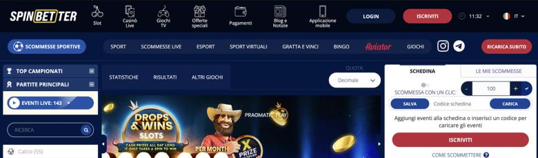 5 | SpinBetter | €1500 + 150 FS | 4400 | CashtoCode, Dash, USDC, SticPay, Rapid Transfer | Sì | Assistenza clienti tramite chat live e e-mail | Curacao |