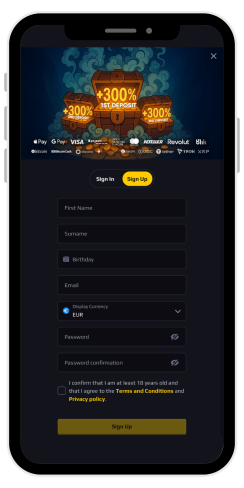 - Deposito #1: 300% Fino a 300 EUR + 210 Giri Gratis