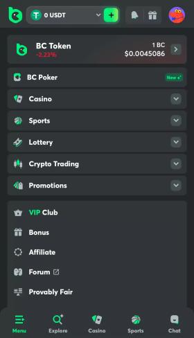 I siti di casinò che accettano criptovalute sono solitamente incentrati su iscrizioni, depositi e prelievi rapidi. Prendiamo ad esempio il casinò online BC.GAME. Consideriamo l'interfaccia della versione mobile, poiché più dell'80% dei giocatori la utilizza.