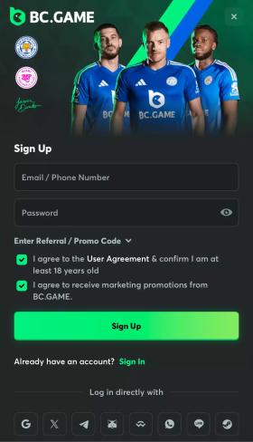 Puoi registrarti in due modi: con la tua email/telefono o accedendo con Google, X (Twitter), Twitter, WhatsApp, Steam o il tuo portafoglio crittografico.