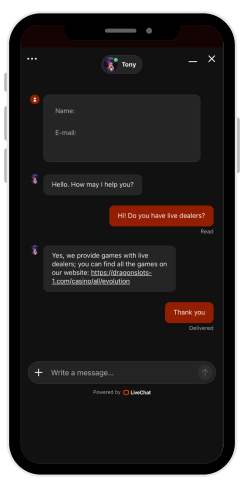 Ho visto diverse recensioni negative sull'assistenza clienti su altri siti. In una recensione del casinò online DragonSlots è stato scritto che il team di assistenza "non aiuta affatto". Posso dire che nel mio caso, con problemi abbastanza semplici, l'assistenza ha risposto e ha cercato davvero di aiutarmi.