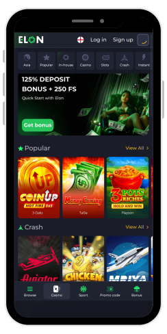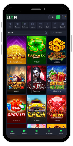 Il casinò offre un'ampia selezione di giochi di vari fornitori. Dopo essere entrati nel catalogo dei giochi, sono disponibili le seguenti sezioni: Asia, Popolare, Interno, Casinò, Slot, Crash, Istantaneo, Gratta e vinci, Tavolo e Altri. La barra di ricerca appare quando si apre la sezione Altri, dove i giochi di casinò di ElonBet possono essere cercati per titolo o per fornitore.
