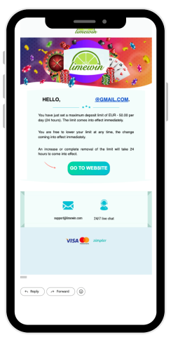 Durante la preparazione di questa recensione di Limewin, non ho trovato una pagina di contatto separata. Nelle T&C, ho visto l'e-mail di supporto, che ho poi utilizzato più volte per inviare le mie richieste. L'assistenza via e-mail risponde entro poche ore, il che è generalmente standard per la maggior parte dei casinò.