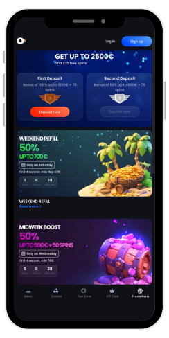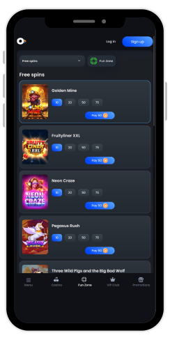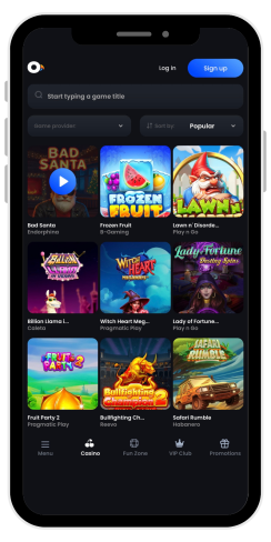 Nel catalogo principale, i giochi sono divisi in sezioni: Giochi popolari, Giochi più recenti, Slot, Giochi fortunati, Gratta e vinci e Bonus Buy. I giochi di casinò dal vivo sono suddivisi in Top Games, Roulette, Blackjack, Spettacoli di gioco e Giochi da tavolo.