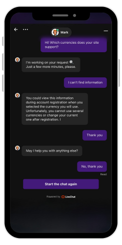 Giocatori provenienti da diversi Paesi - il sito web è disponibile in più versioni linguistiche, il che rende la navigazione e la comunicazione molto più facili. Questo si riflette anche nella Live Chat, dove i giocatori possono scegliere la lingua di supporto che preferiscono.