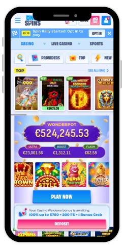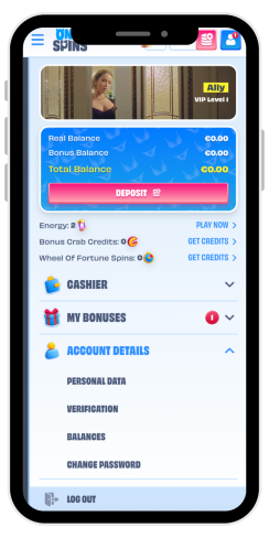Mi è piaciuto che il casinò OnlySpins offra un'ampia selezione di giochi con jackpot - circa 1,400 sono disponibili sul sito. Il casinò offre anche un'ampia gamma di promozioni e attività, tra cui tornei, gare, Ruota della Fortuna e Bonus Crab. Un altro vantaggio è rappresentato dai bassi limiti minimi per i depositi e i prelievi.