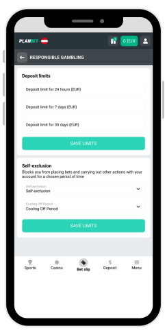 Il casinò Planbet offre una solida serie di strumenti per il gioco responsabile. Nel conto personale, i giocatori possono impostare limiti di deposito (giornalieri, settimanali o mensili). Dalla stessa sezione è anche possibile richiedere un periodo di riflessione o di autoesclusione. Se un giocatore vuole impostare anche dei limiti di scommessa, deve contattare il supporto via e-mail.