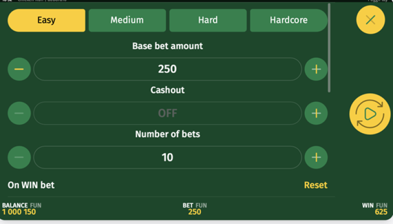Il gioco è semplice: si guida un pollo passo dopo passo attraverso una griglia. Ogni mossa azzeccata aumenta il vostro moltiplicatore. Si può incassare ogni volta che se ne ha voglia, ma se si cade in una trappola si perde la puntata e il giro finisce.